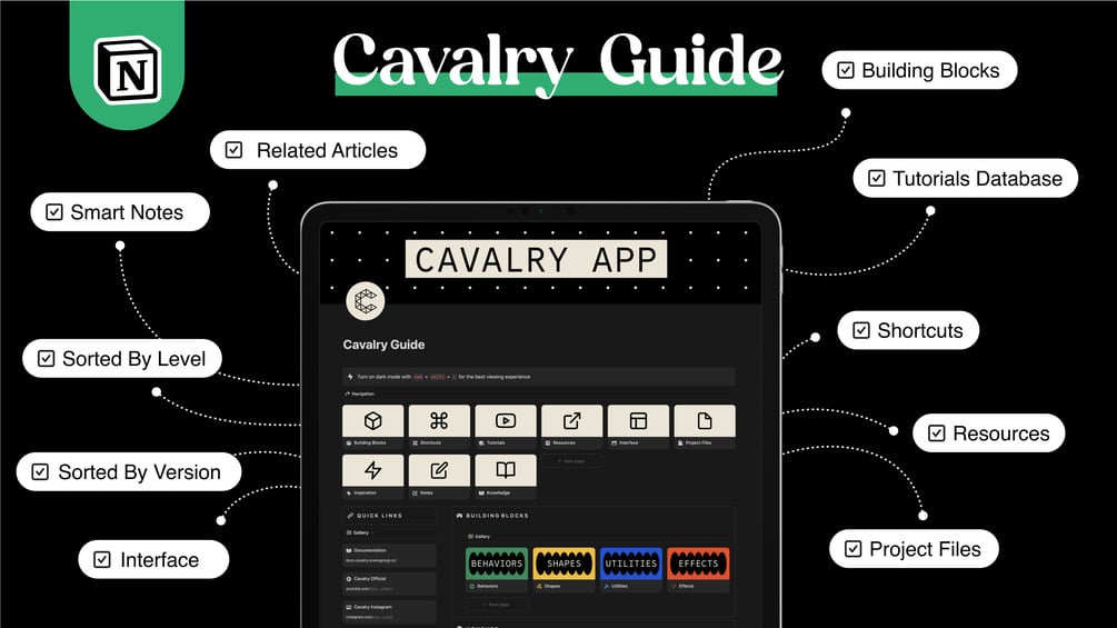 I hope you find this collection of resources and information about the Cavalry app useful in your learning journey! You will have access to all the updates with latest tutorials and articles, inspiration, and resources. You don’t need to duplicate it into your Notion space, in fact, you don’t even need a Notion account and you can access it as you would do with the website through the link.