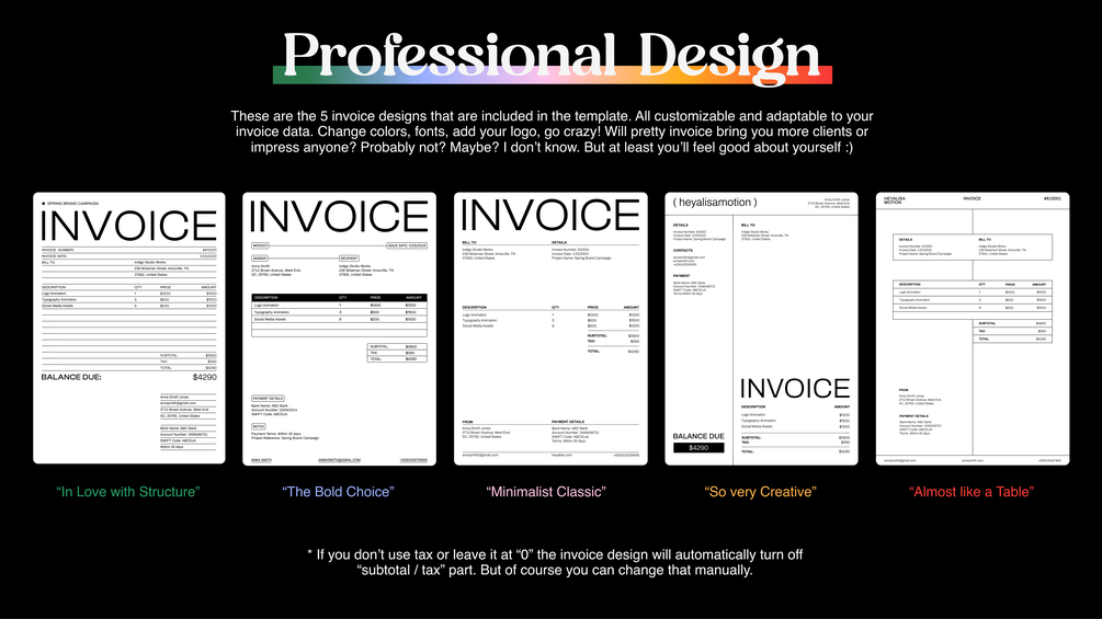 It was the “What if?” question that made me experiment with the Google Sheets + Cavalry integration and create this product. And then it grew into something bigger - this first version includes 5 custom templates for the Cavalry app and the backend Google Sheet template for the invoice data storage and analysis.